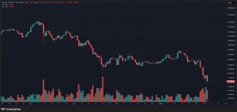 A quick rebound took prices to $74,500 as of press time, dampening the intraday correction to 5.8%. The decline marks the lowest price point in the President Donald Trump administration and the weakest level since the November 2024 Presidential Election.
