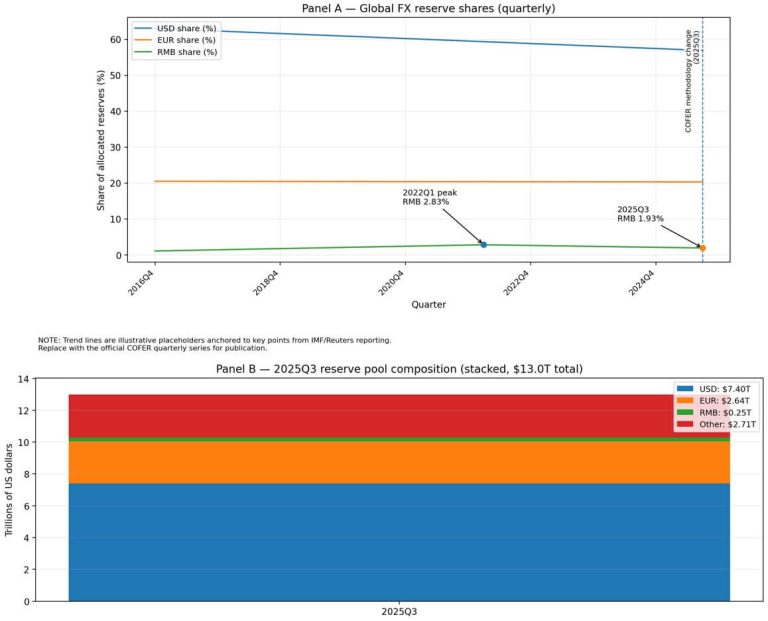 The IMF changed its reserve methodology in the third quarter of 2025 by imputing previously unallocated holdings back to 2000, which makes clean historical comparisons more difficult.
