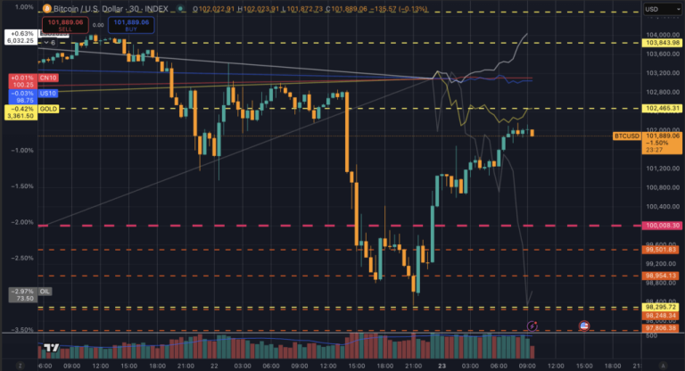 All eyes will be on the US market opening later today to see whether oil and gold continue to retreat alongside strength from equities and Bitcoin.