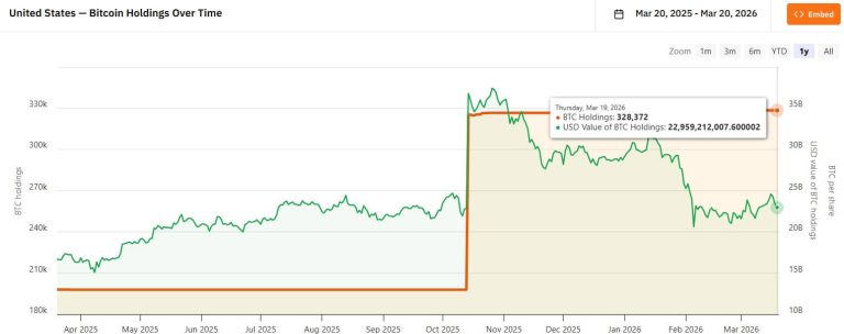 Start with the US government’s own position. Data from BitcoinTreasuries show that US government-related entities hold 328,372 BTC. At current prices, a $200 billion war request would equal roughly 2.82 million BTC, or about 8.6 times that amount.